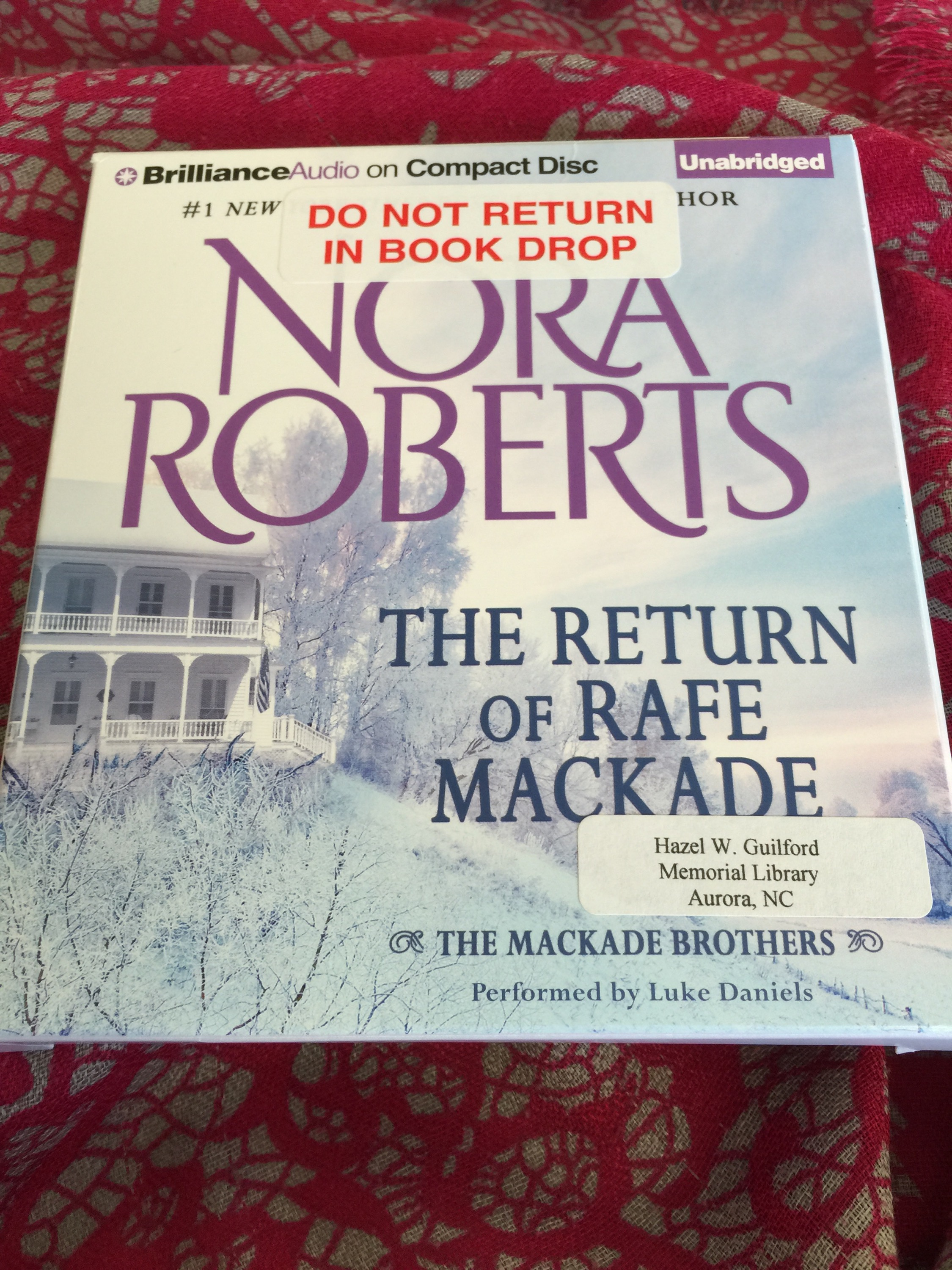 I just finished listening to Nora Roberts’ The Return of Rafe Mackade on audiobook. I’ve been a fan of Nora Roberts for many years but hearing it performed by Luke Daniels is like watching a play or going to the movies. It brings it to life in a wonderful way that is difficult to explain. I love hearing it and as I listen, I am there! The characters become real.