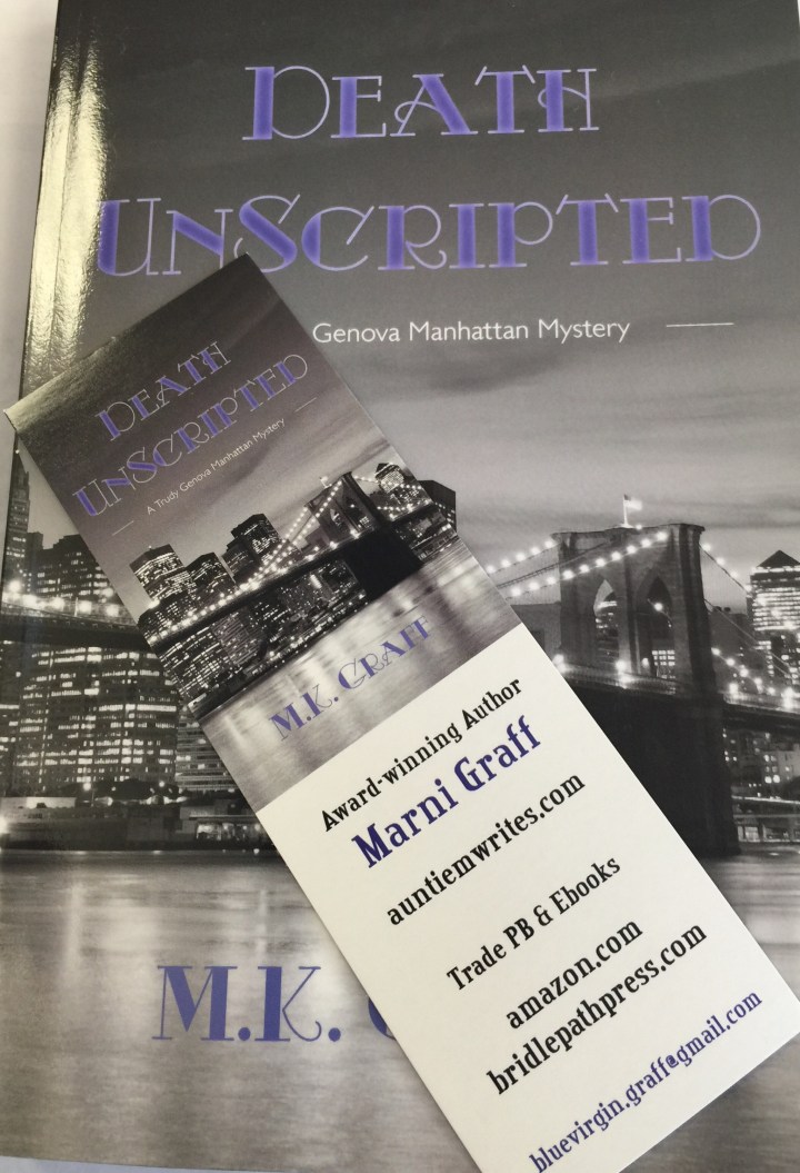 — Death Unscripted is the first novel in a new series by M K Graff. This cozy mystery is quick paced, delightfully fun with a roster of interesting characters. Trudy Genova is witty and charming. Her job as a medical consultant for a movie studio plays a large part of the story. A mystery lover, Trudy believes herself an amateur sleuth. When a co-worker ends up murdered she becomes a suspect and must clear her name. With sexy detectives Ned O’Malley and Tony Borelli, Trudy and her best friend Meg find their investigation complicated by the two policemen.