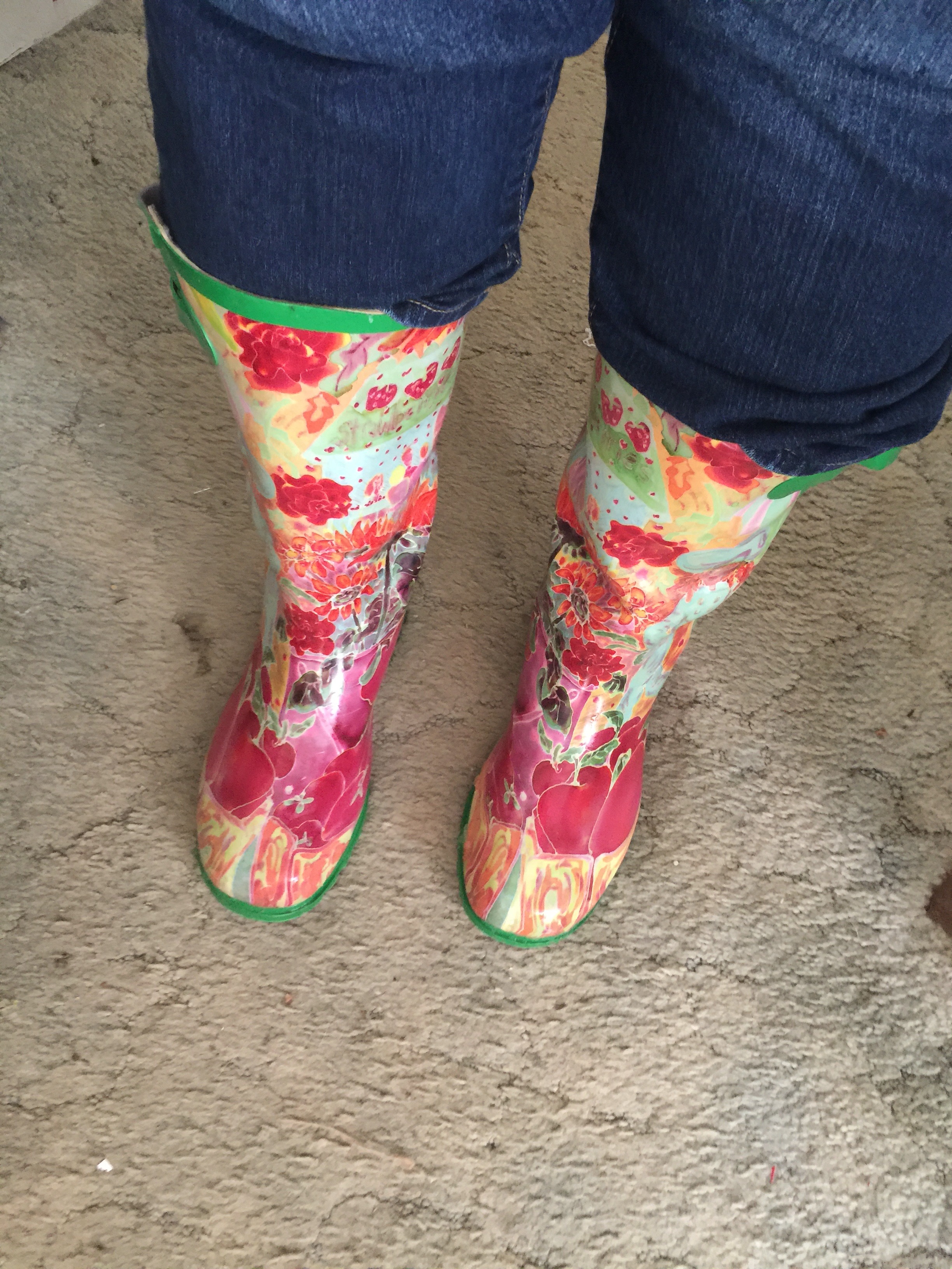 Today I’ve traded in my Go Go boots for a more stylish pair of boots. Mine of course, were not the creamy white rubber boots often worn by fisherman, mine have more personality. Like me, they are colorful.