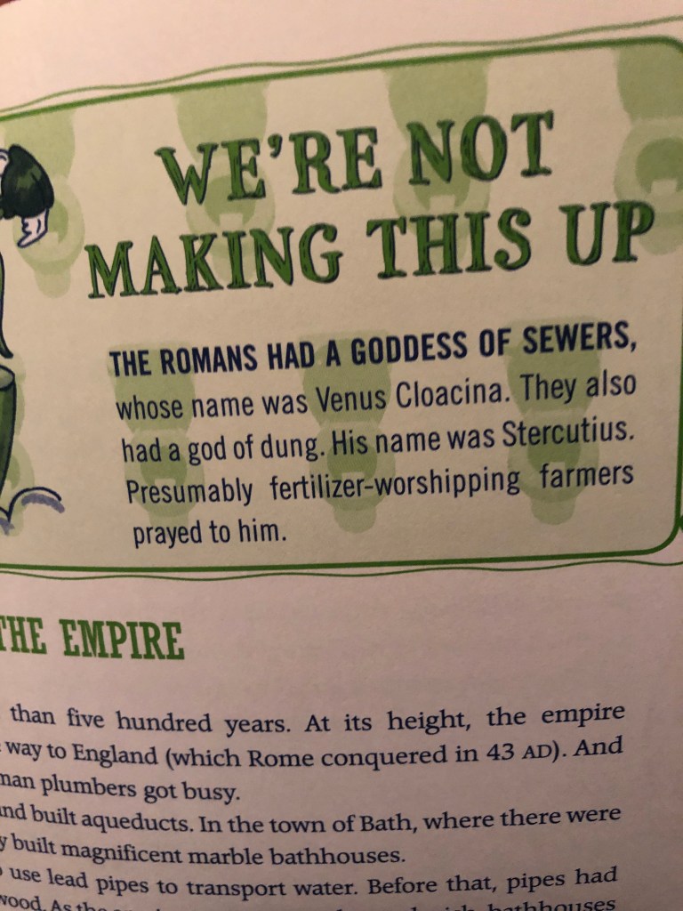 The Romans even had a goddess of sewers and a god of dung. Okay, those of you who write romantic fantasy ever thought of writing the story of Venus Cloacina and Stercutius?