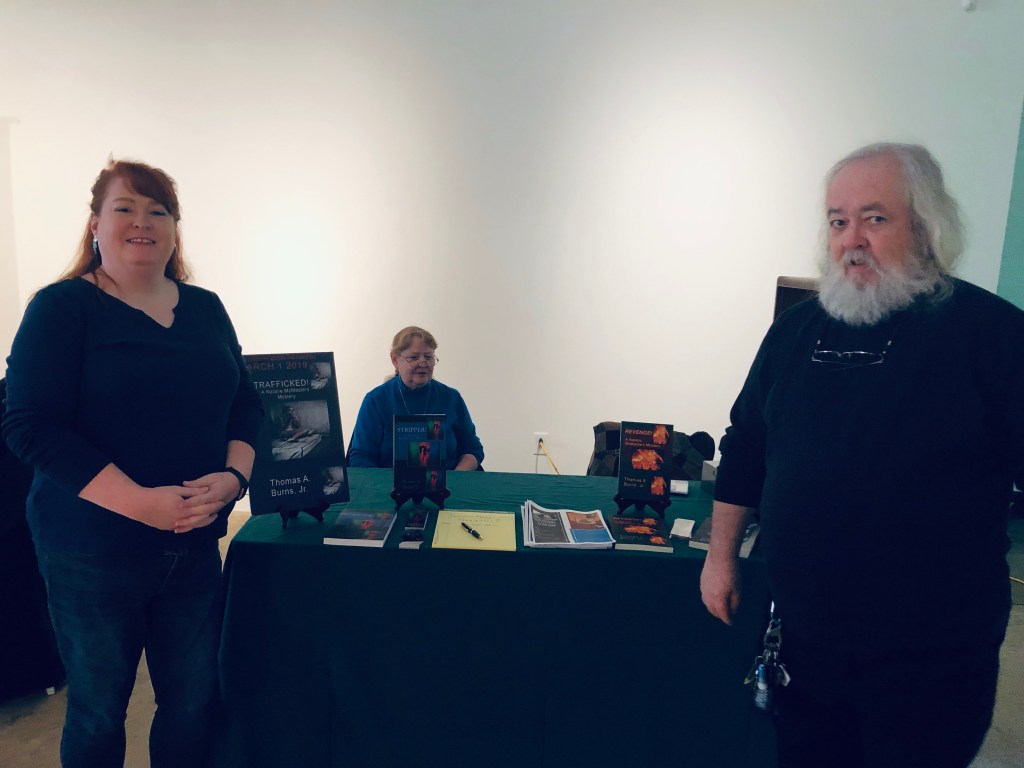 But I did have a good time. As I was setting up my table the man across the way greeted me and we exchanged information about ourselves and our books. Come to find out, we have a friend in common, my mentor, Marni Graff. Thomas A. Burns, jr. author of Stripper, Revenge and Trafficked also deals with the darker side of life, especially sex trafficking. I am presently reading his first book and Tom and I have plans for an interview. It will be interesting to compare notes.