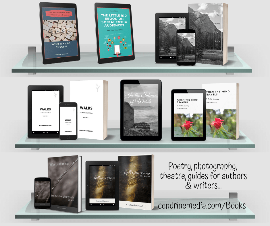 Sherri: According to your biography, you are a French-born Canadian photographer, poet, author, and the co-founder of FPoint Collective and Auroras & Blossoms Poetry Journal, tell us first about where you are from and then more about your other works.