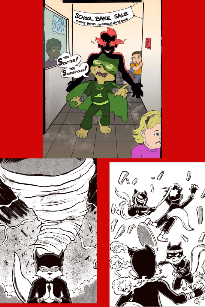 Michael: Writing I am inspired by a variety of Saturday morning cartoons, Disney movies, and of course Marvel. If I were to pick writers I love I’d say Stan Lee, Lewis Carrol, Friz Freleng, Bob McKimson, Kurt Vonnegut, and Chuck Palahniuk.