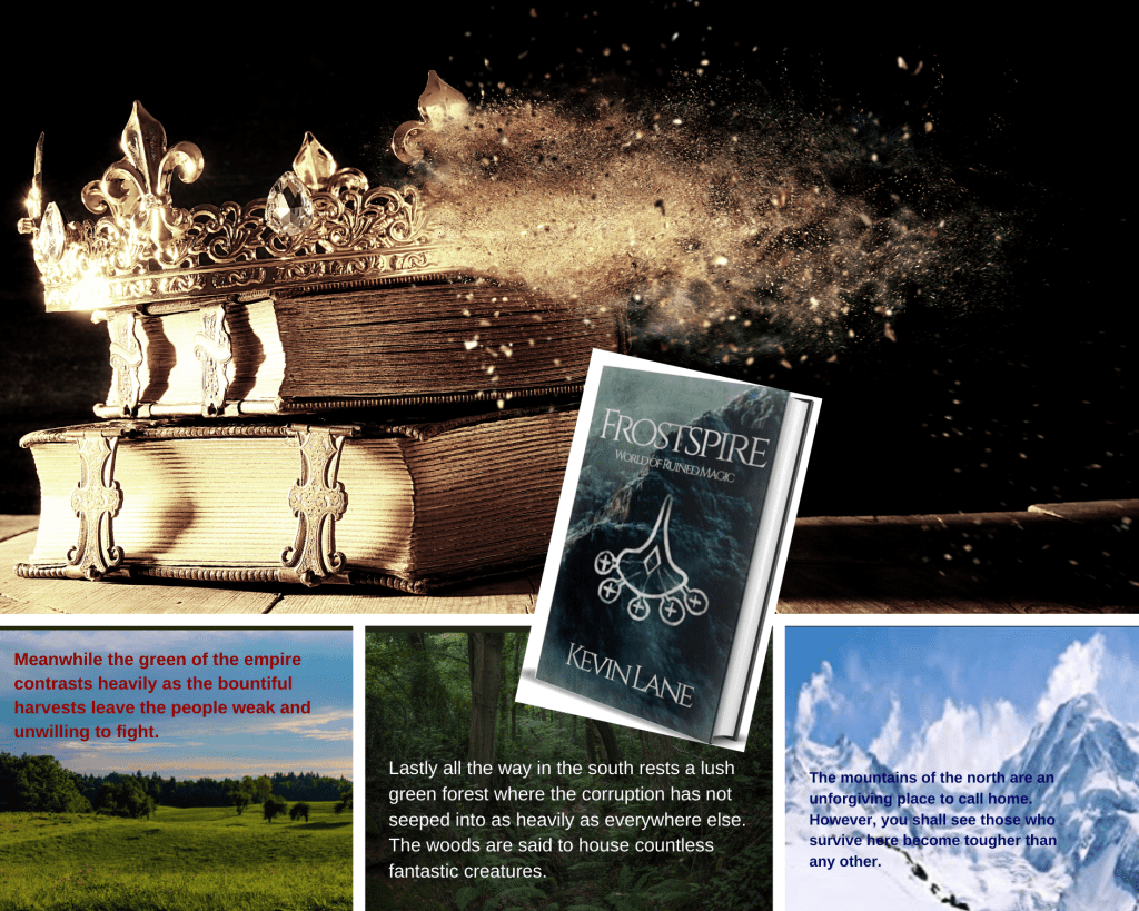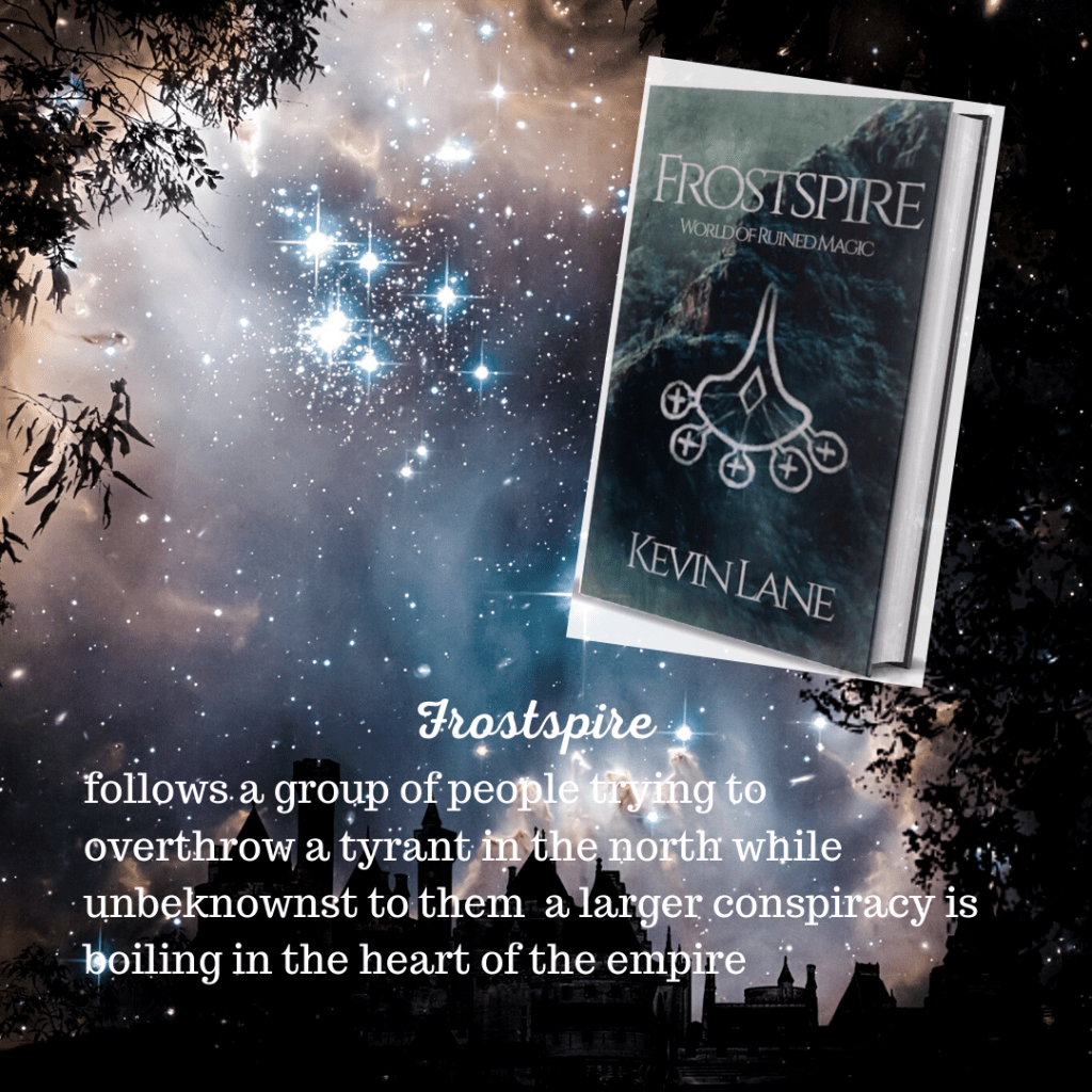Kevin: It is more dark fantasy. It can be described as Game of Thrones meets Lord of the Rings as my dad put it. It takes place in a world ravaged by chaotic energy which causes natural disaster and beings called Remnants to pop up and with the lack of balance the world is slowly crumbling into the void. It is a very unforgiving world in which death is just a part of life. A religion actually spouts the importance of death to return energy to some Lord of Light. Much attention has been put into the political climate of my world as it is central to the story. I like to say Frostspire is the first chapter of a much larger story. As for a release date, I really can’t say. I still need to work on it a bit as I feel a few things don’t flow as I want them to. But my aim is a 2021 release if possible!