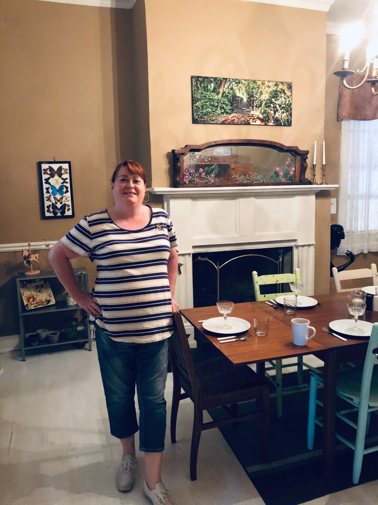 Adrienne drove, and she and I shared stories about ourselves on our trip. I’d left my husband home with no electricity after a hurricane. He had told me to go, no need for me to cancel my plans since everything else was okay. Adrienne pointed out familiar places as she’d grown up in the area. She took me on a quick driving tour of the college and down town before bringing me up to the renovated house where I’d be staying. Adrienne would stay with her parents since they lived nearby and come in for the meals and meetings.