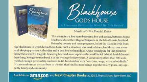 Murdina: I asked a relative for advice and he gave me the name of his publisher. That did not work out. Second suggestion was a source in Stornoway that also did not work out. So just googled “Christian publishers” and got the name Christian Faith Publishing. On my third try, then, I found a publisher. Paid a fee for their editorial assistance and they worked with me for nine months. There were some frustrations along the way, but all in all I am happy with them. Particularly happy with the cover of Blackhouse God’s House.