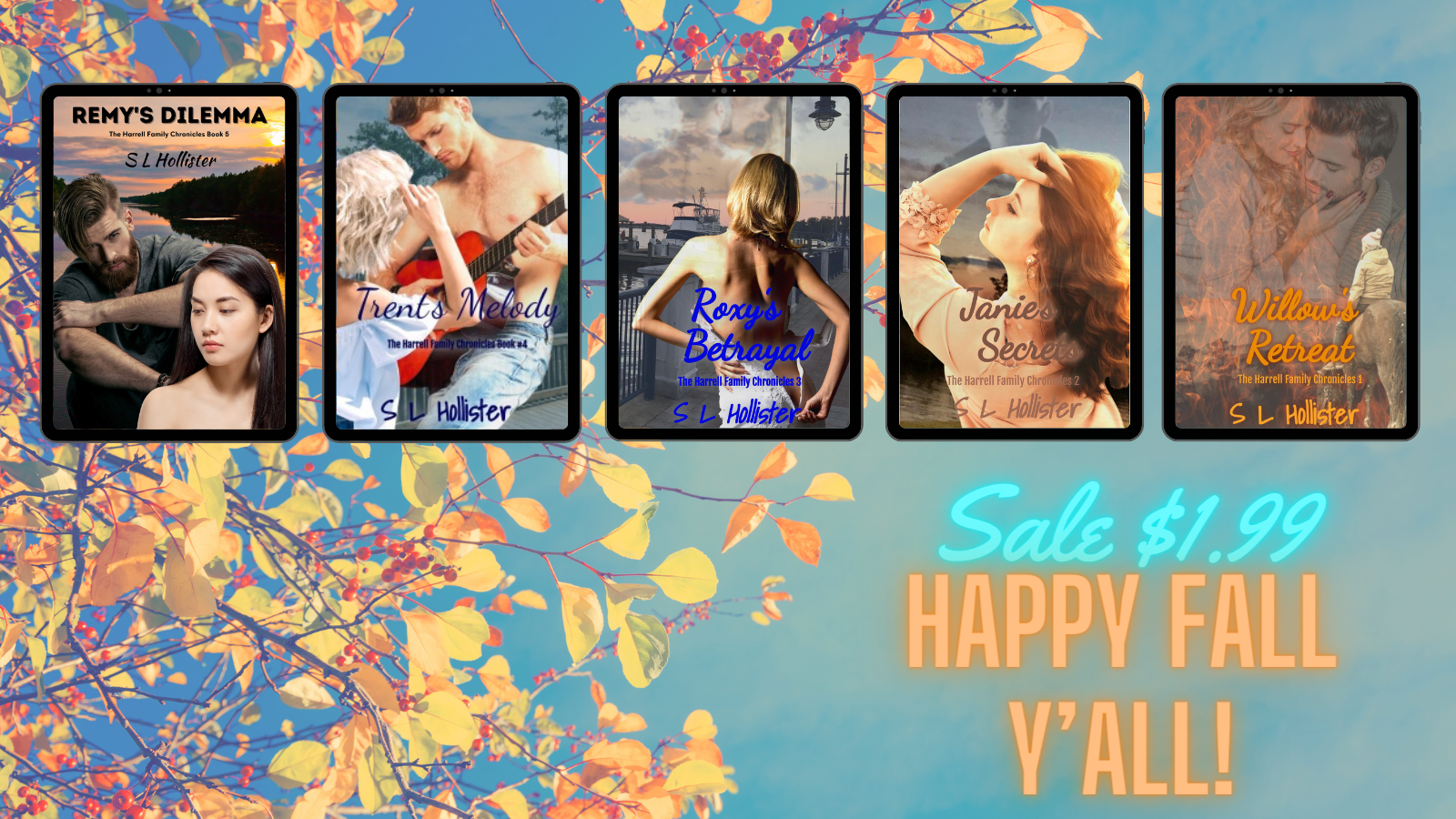 Only one day left to get the Harrell Family Chronicles for the low price of $1.99 each! You can purchase the ebooks directly from my website or from your favorite ebook retailer.
