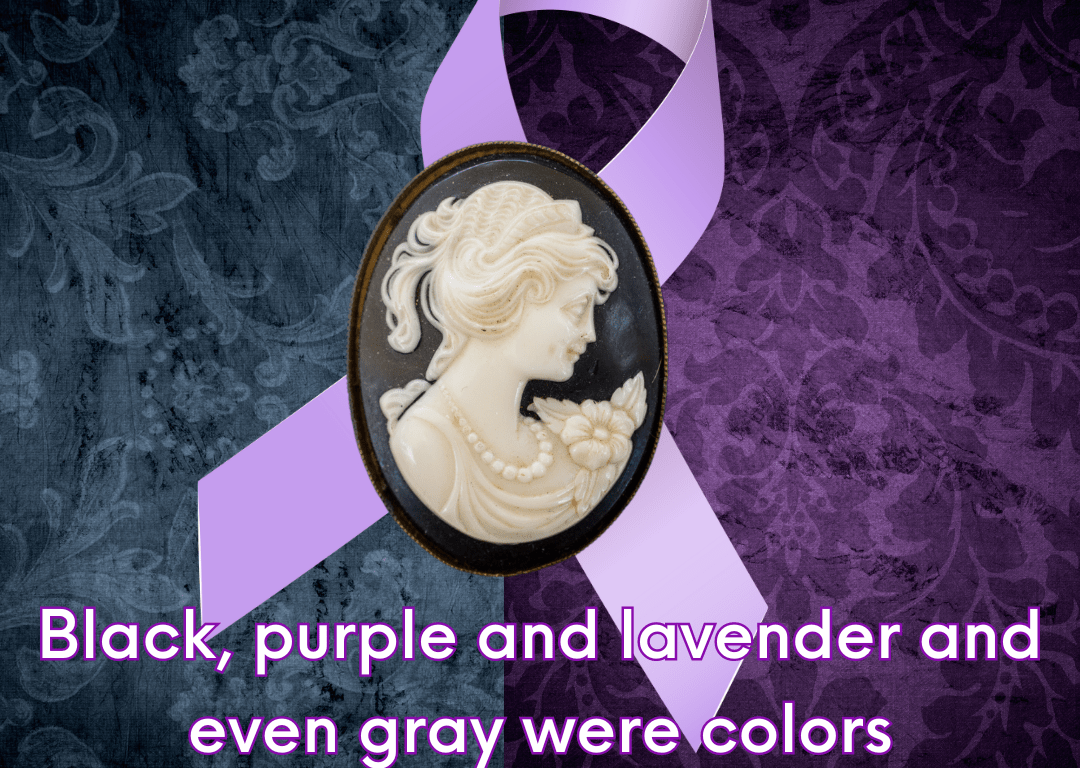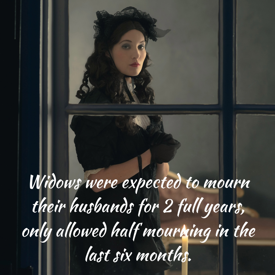 - Widows were expected to mourn their husbands for 2 full years. The first year was full mourning. They were expected to socially isolate themselves except for church, and wear only black, including a full veil in public. During their last six months of mourning, they were allowed to wear gray and lavender. Even the children were expected to wear black for a full year after the death of a parent or sibling. Men, however, were only required to mourn for three months, and a widower with children was on the marriage market before the ground could even settle on the grave.