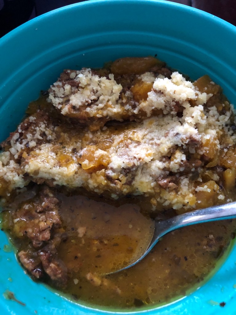 Well, I roasted the squash but decided I needed something more for my husband. I fried some Italian sausage, drained the excess fat, added the butternut squash, garlic, oregano and basil, plus a little salt and pepper. I then added chicken stock and simmered. When I scooped it into my bowl I topped it with Parmesan cheese. It was so delicious but I couldnβt get my husband to try it.