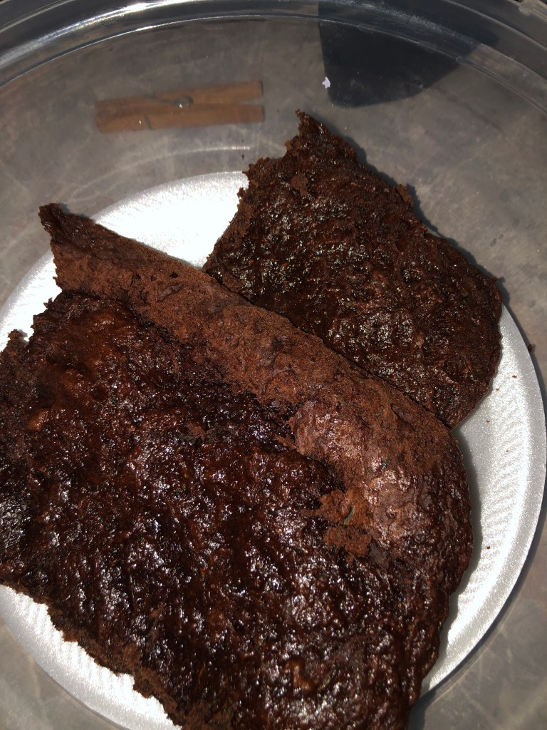 Recently a friend brought my husband a box of zucchini. I’m truly surprised he brought it home. I gave away a few pieces and had to through one away, but the rest I chopped, sliced and grated putting most in the freezer. After running out of space in the freezer I got the bright idea to make zucchini brownies. Using 2-chocolate cake mixes, I melted 1 1/2 sticks of butter, 4 medium eggs, and a cup of shredded zucchini that has been drained and pressed to remove extra moisture.